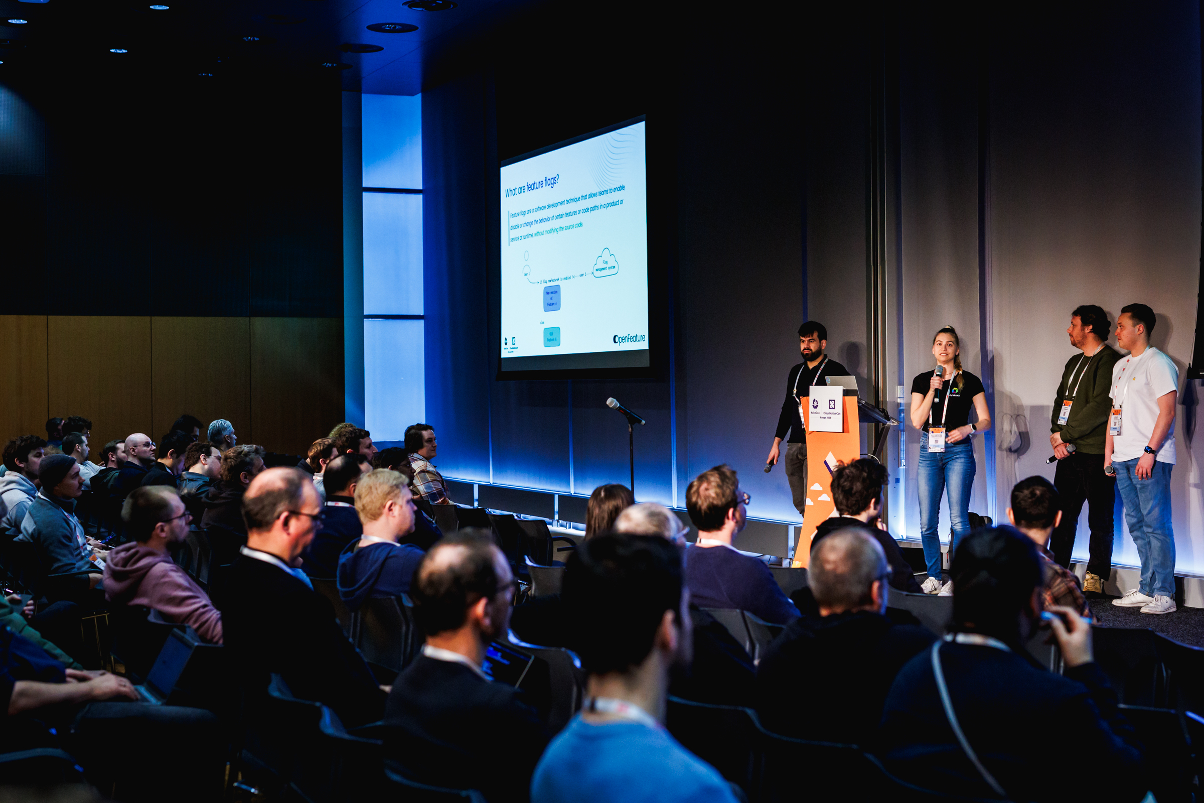 OpenFeature Update From the Maintainers: Lukas Reining, André Silva, Thomas Poignant, and Alexandra Oberaigner shared updates on the MCP server, the OpenFeature GitHub Action for flag cleanup, and the stable release of OFREP. The session was part of the Maintainer Track on Wednesday.